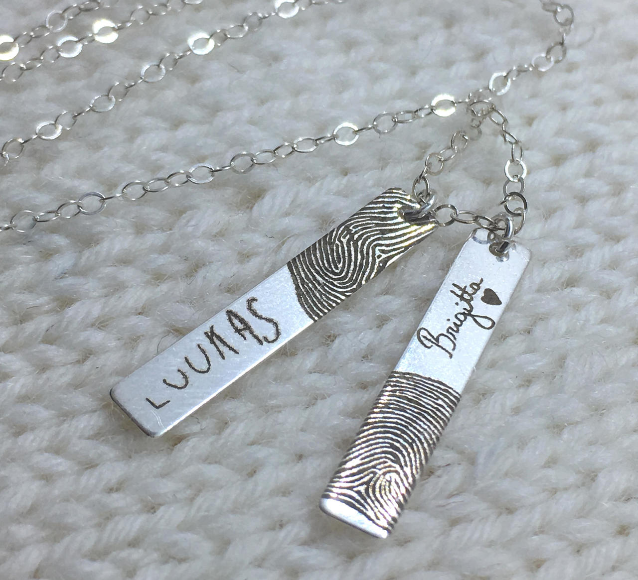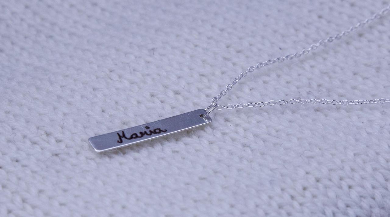Vertikaalse ripatsiga ehe on stiilne ja minimalistlik ning sobib kingituseks nii lastele kui ka täiskasvanutele. Ehe annab võimaluse lasta fantaasial lennata ning graveerida sinna nii käsitsikirjutatud kui trükitud teksti, sõrmejälge, mõnda pisikest joonistatud sümbolit või häälelainet sinu salvestatud personaalsest sõnumist või juppi mõnest tähendusrikkast muusikapalast. Samas ei välista üks teist - sina oled täna ehtedisainer ning kujundad just sellise ehte, mis sulle või su kallile inimesele meeldib ja kogu maailma tähendaks.