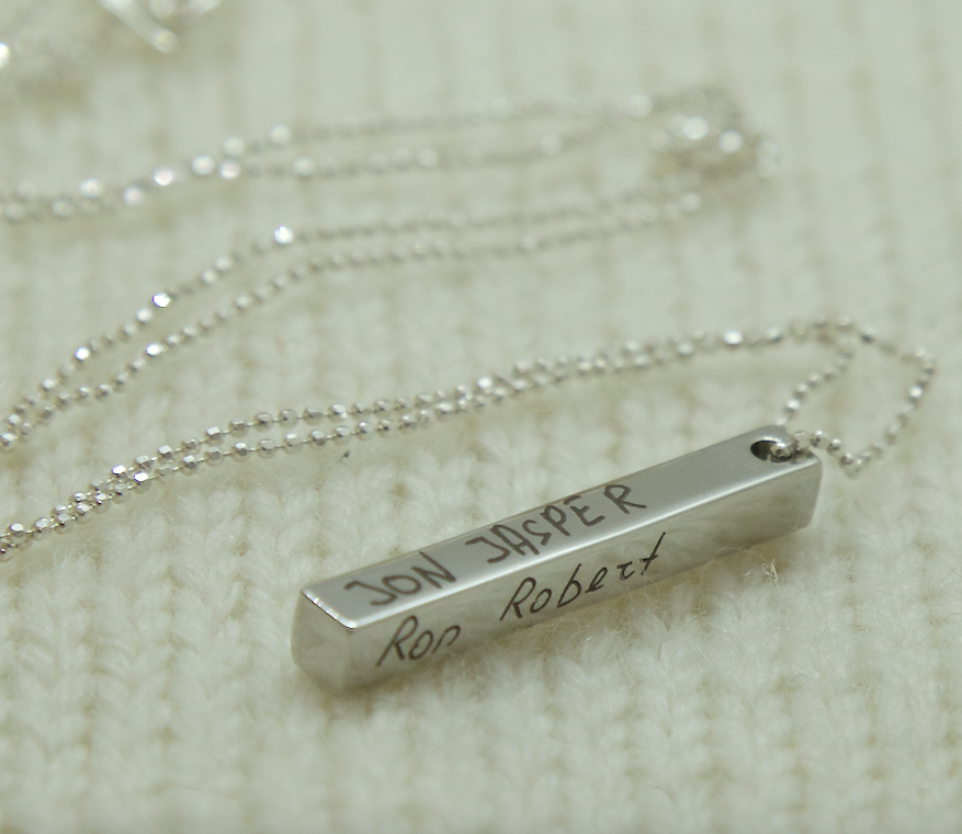 Kuna 3D ehte kõigile neljale küljele on võimalik graveerida, on võimalusi ehte enda või oma kalli inimese jaoks eriliseks muutmiseks sadu! Näiteks mahuvad sellele ära kõigi sinu laste nimed. Samuti on võimalik ehte erinevatele külgedele graveerida lapse nimi, sünnikaal, -pikkus ja -kuupäev. Lisaks tekstile saab ehtele graveerida ka häälelainet ja sõrmejälge - mida iganes sinu süda soovib!