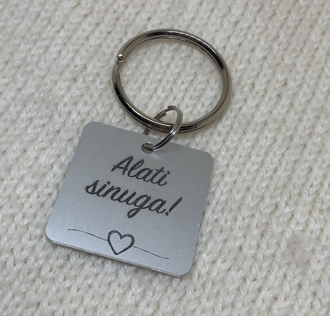 Graveerime võtmehoidjale täpselt selle sõnumi, mida Sina tahad selle kandjale edastada. Võid selle kirjutada käsitsi oma käekirjaga või lasta selle meil graveerida endale sobiva trükifondiga. Lisaks tekstile saame me graveerida võtmehoidjale soovi ka pilte ja joonistusi.